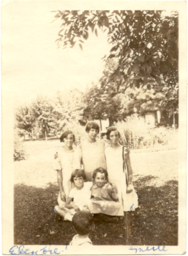Two of John's children , Merle and Elenore and friends, ca. 1924 in