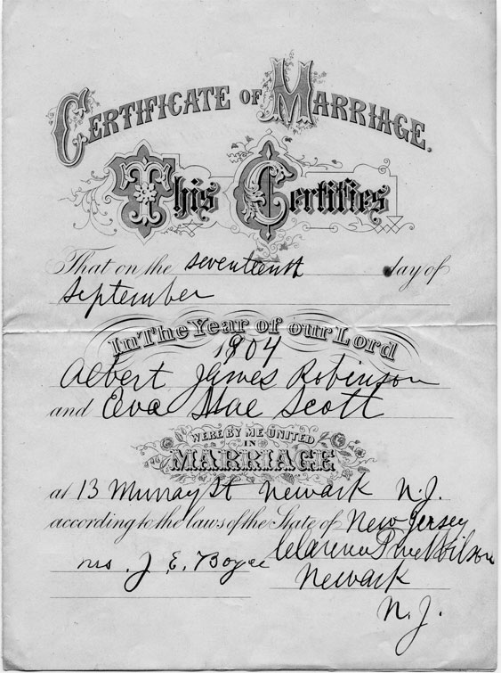 "AJ" married Eva on Sept 17, 1904 in Newark, NJ. They moved out