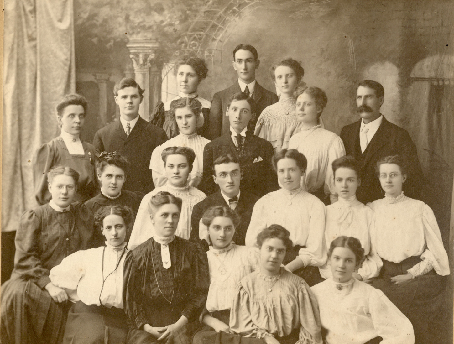 This group photo is probably their class at Nyack College in NY, ca. 1905.